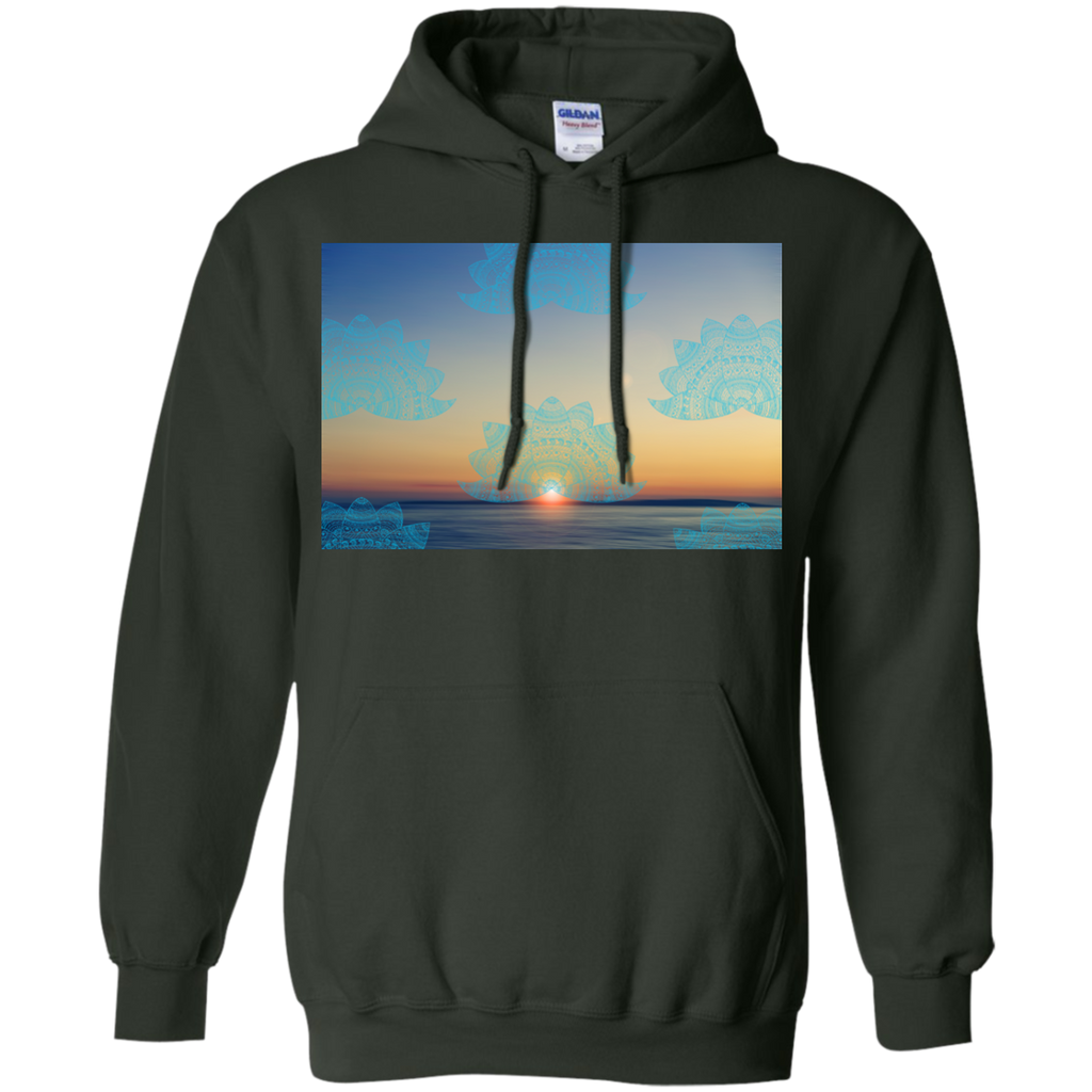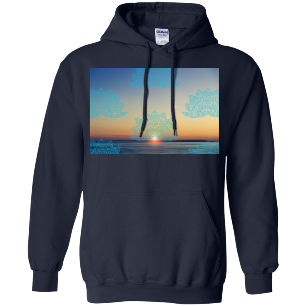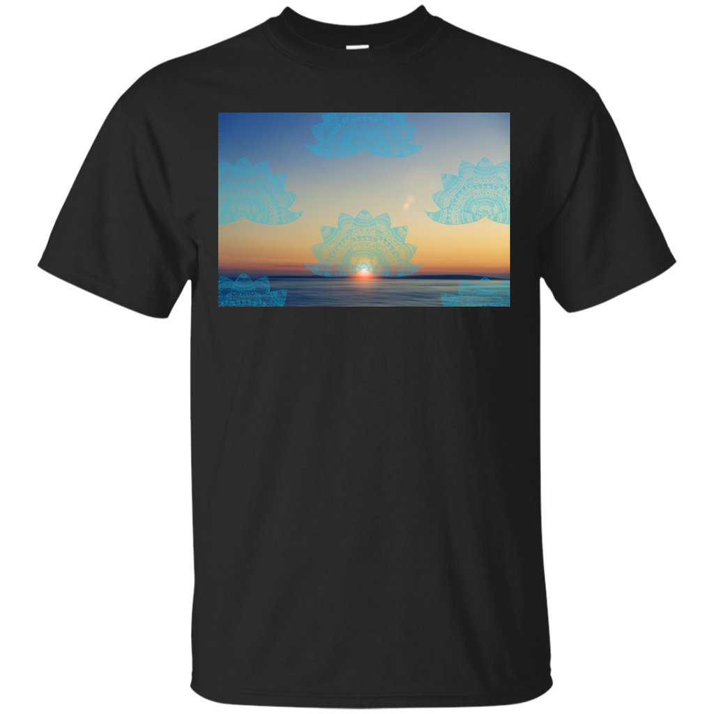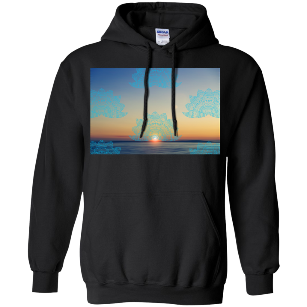 Yoga - Teal lotus doodle mandala on blurred sunset with sun flare T Shirt & Hoodie