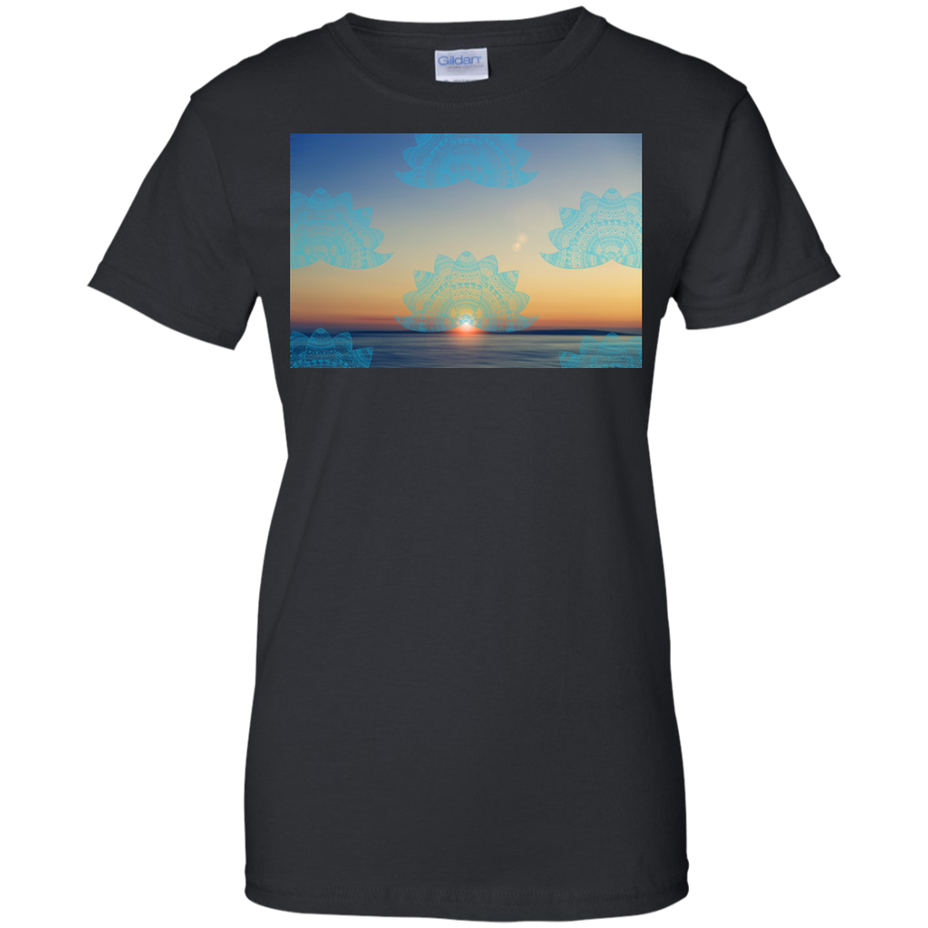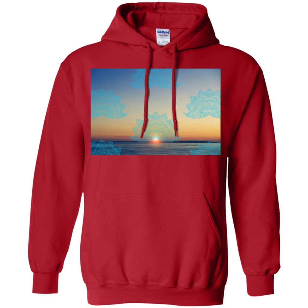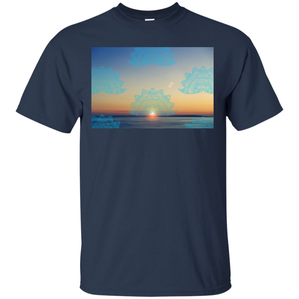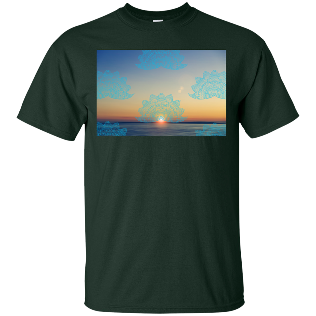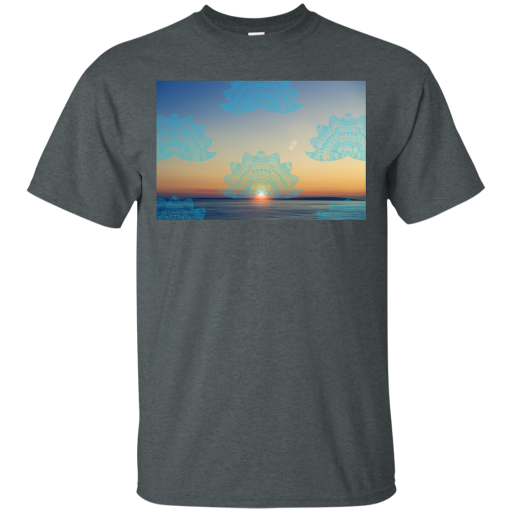 Yoga - Teal lotus doodle mandala on blurred sunset with sun flare T Shirt & Hoodie
