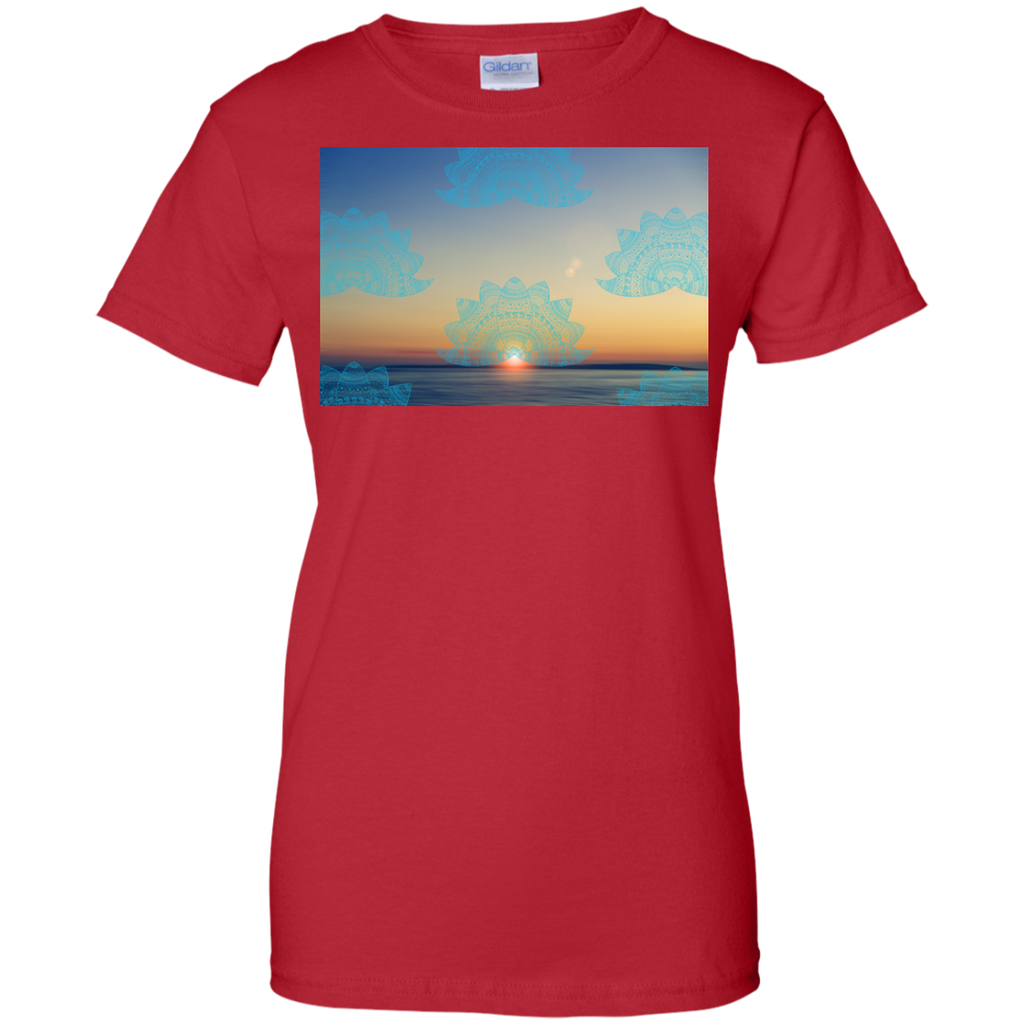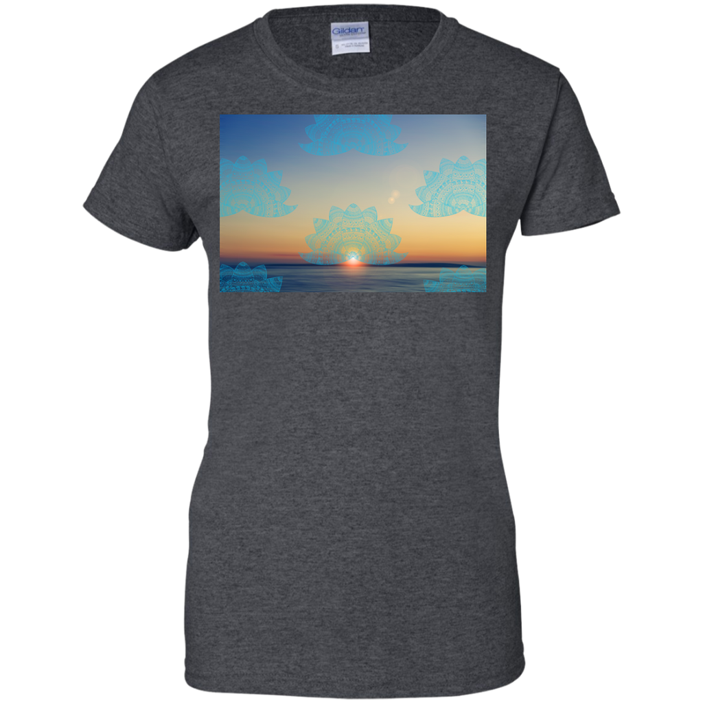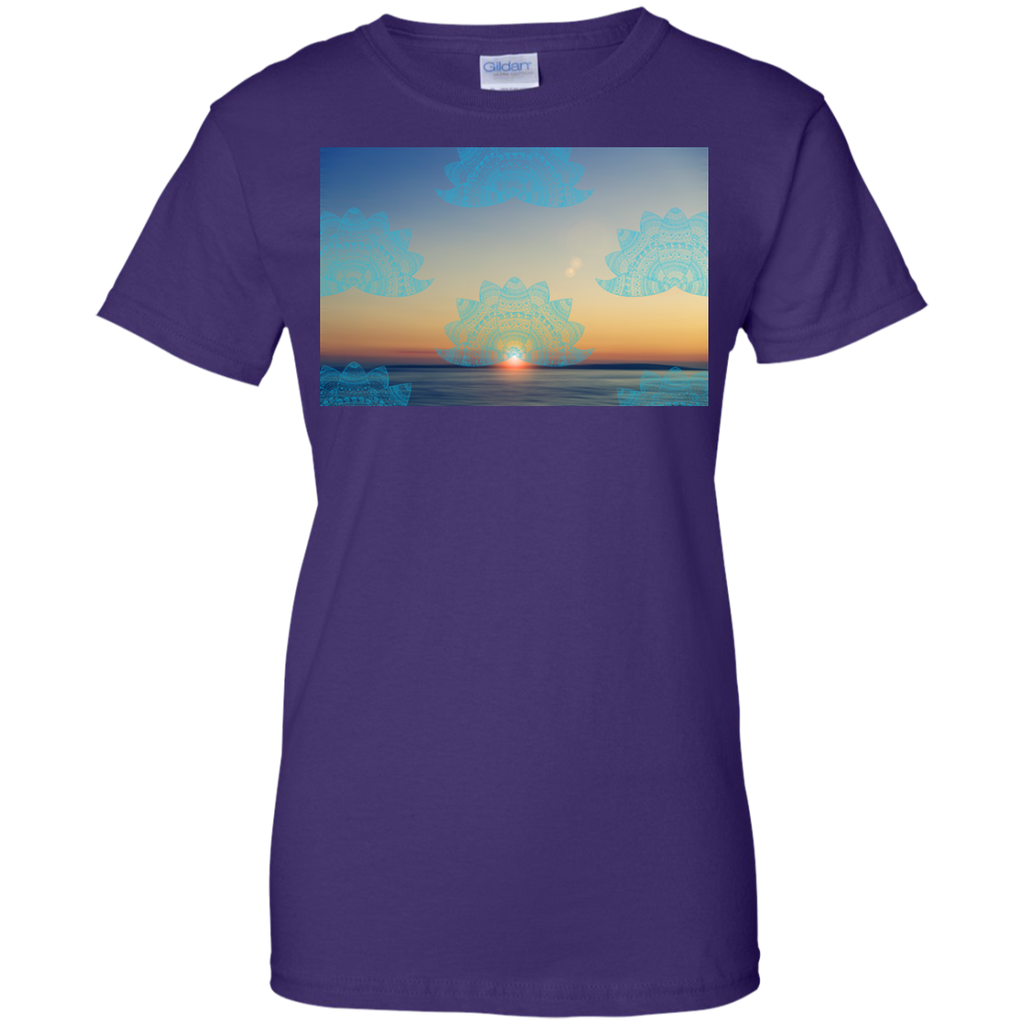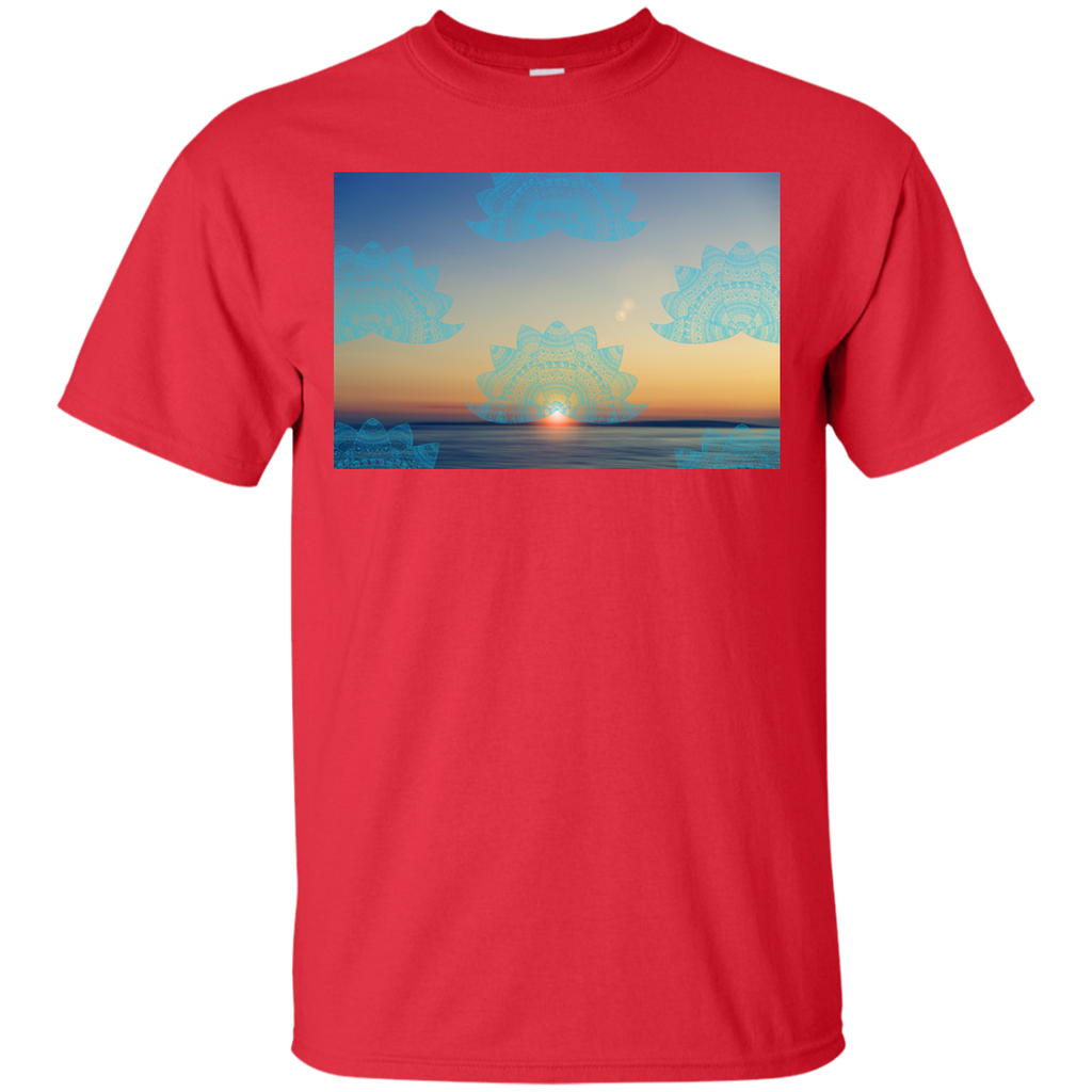 Yoga - Teal lotus doodle mandala on blurred sunset with sun flare T Shirt & Hoodie